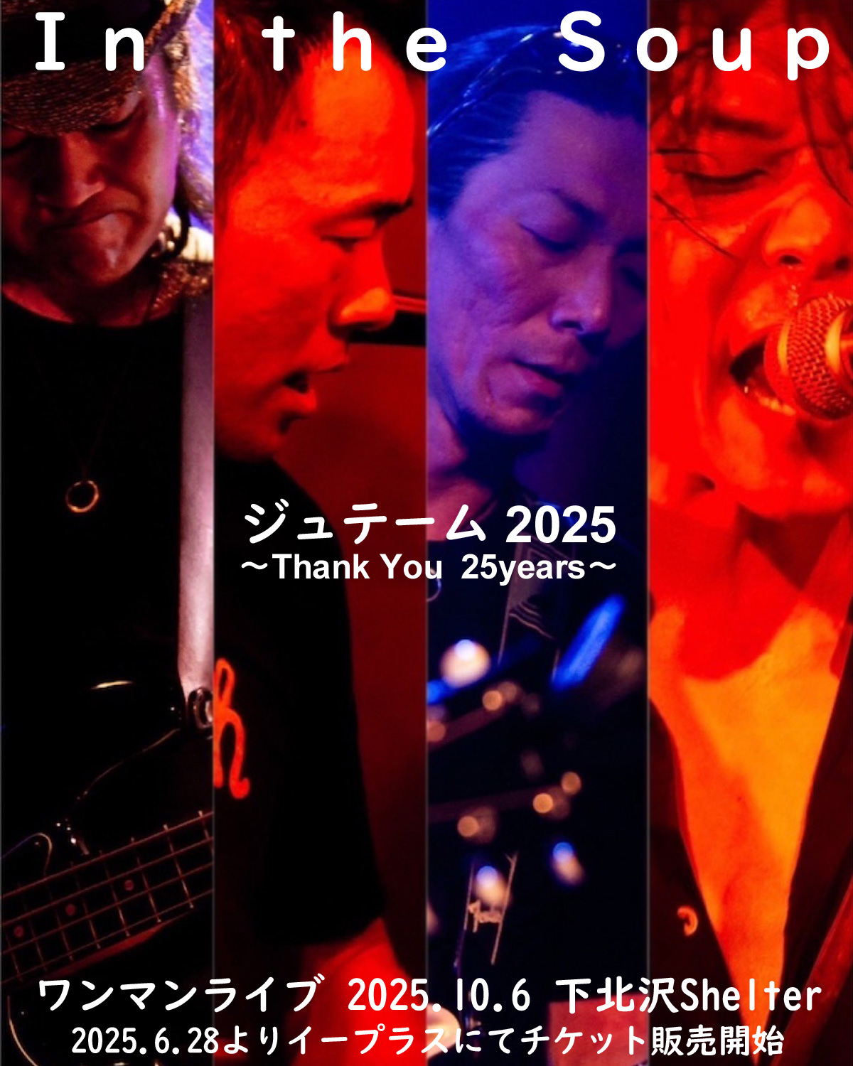 今年もやらせてください!ジュテーム! 10月6日(月)に下北沢シェルターにてインザスープのワンマンライブ「ジュテーム2025 〜Thank you 25years〜」の開催がが決定しました!